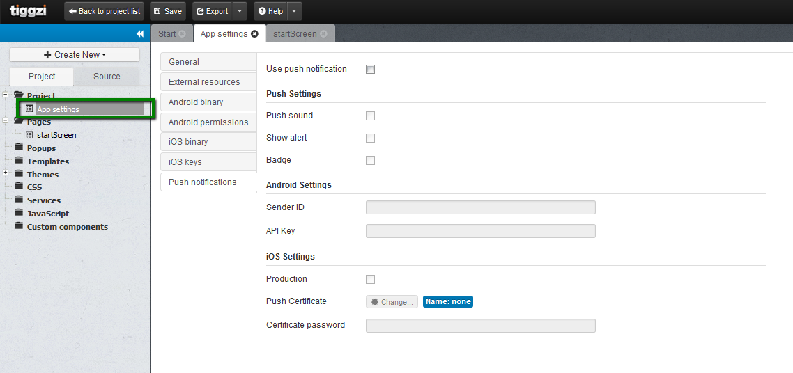 Hello, I'm relatively new at building apps so, please bear with me. I'm using the tutorials provided to create a screen where push notifications will appear. Now, I'm stuck at creating the services because as soon as I create a new service I get a page only for adding new parameters and I can't seem to find the sidemenu which gives you the additional settings.