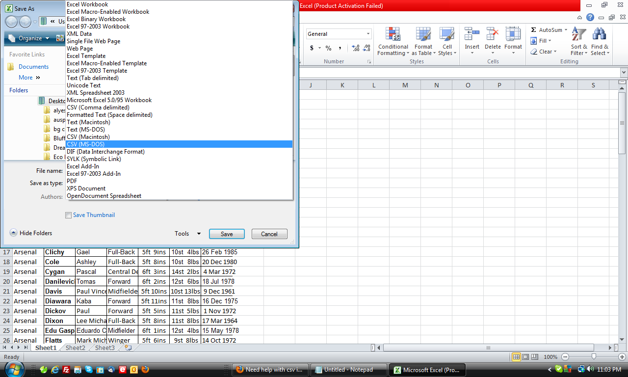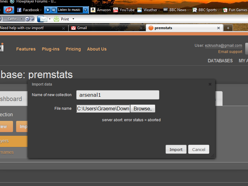 Ive tried the csv Mike sent back to me and I am still getting a server aborted error, it must be something on my side but I dont know what.