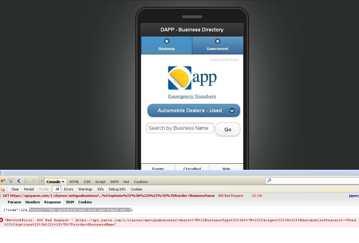 I have a select menu component and a text input component both connected to parse database. I notice quite frequently when searching for database listings no results are returned.. I checked in firefox firebug and got the error code 124. Do you know why this is happening and how to resolve?
