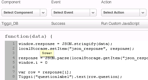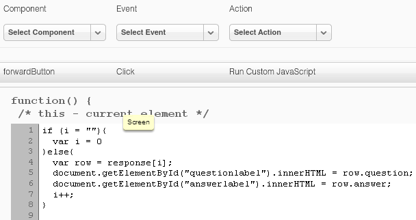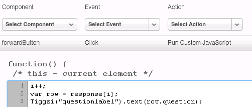 You have to change JavaScript code. Replace codedocument.getElementById("ComponentName").innerHTML = row.question;/codewith