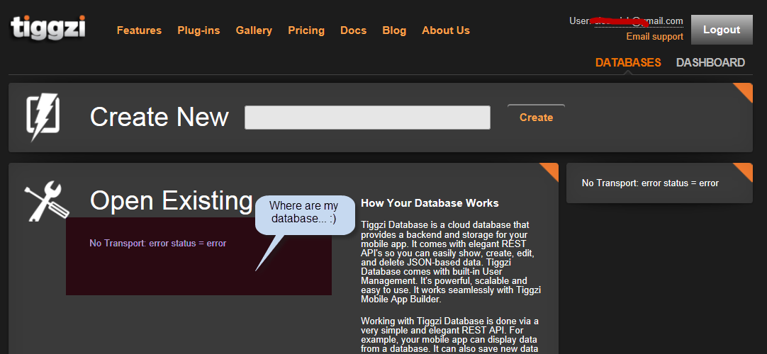 So, I added my plan... I get further now. I guess the fix I'm waiting for will bring back my database I created before the upgrade. At this point, if they are not recovered I'm cool. They were just beta databases... but nice to get back if you can.
