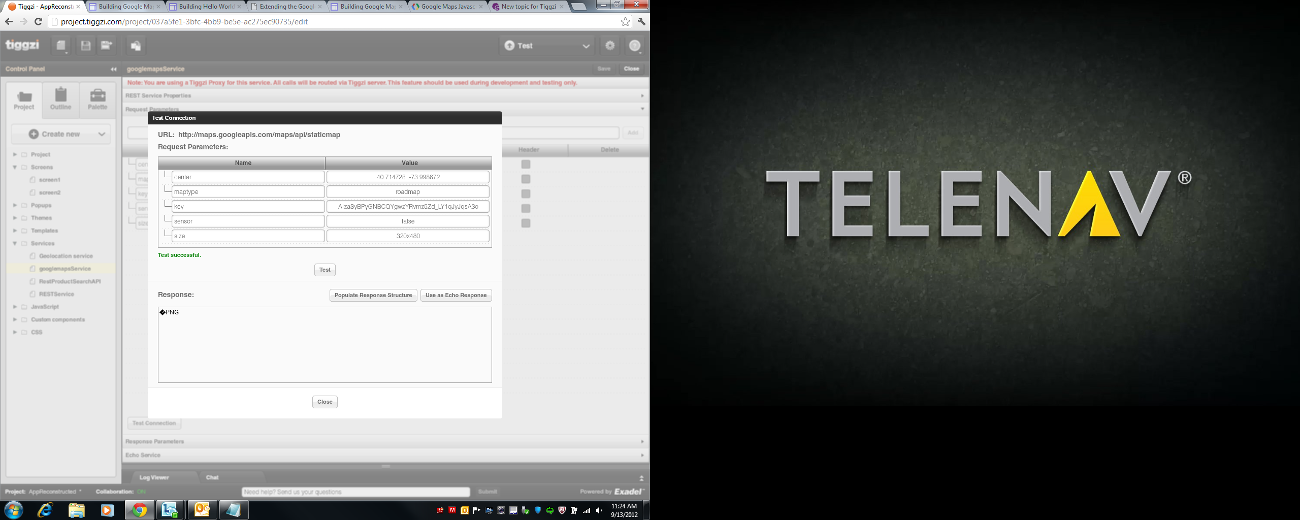 http://maps.googleapis.com/maps/api/s... with all the required parameters Center, maptype, key, sensor, size and the TEST IS SUCCESSFUL AND i see a PNG in the result block when i click the test button , so when i click POPULATE RESPONSE STRUCTURE nothing happens,