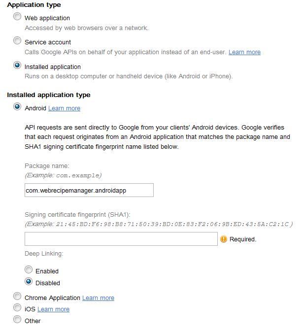 Trying to create google api need sha1