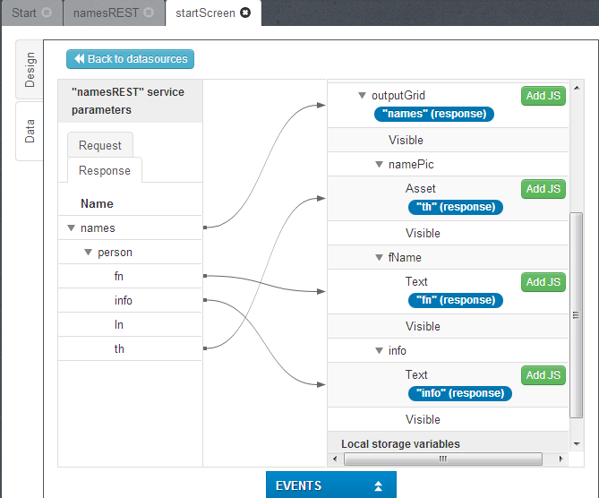 2) To Display all the names at startup on the startScreen, in outputGrid create mapping from person (not from names).