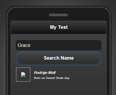 The other 2 problems relate to the display of the names. Right now everything I search for is ignored, as in the example above with "Grace." Instead of the searched name "Rodrigo" is always displayed.