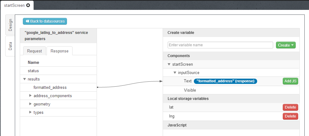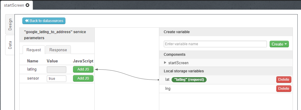 Click "Add JS" in front of request parameter latlng and paste the following code: