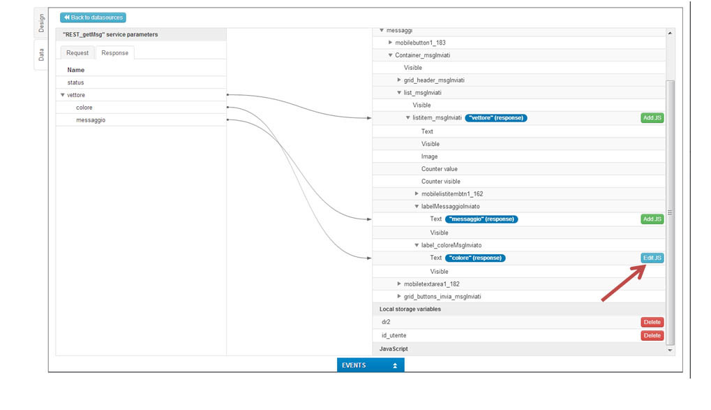 One of the data i get from the rest service is the user status (online, offline etc.) and i mapped this data to a label [label_status] in the grid contained in the list item component.