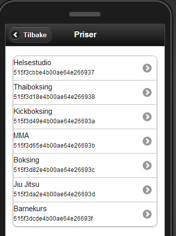 In the tutorial you have to create REST service (to get all routes), in my case is get all activities. And as you can see iam listing out all my activities with the _id.