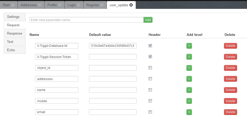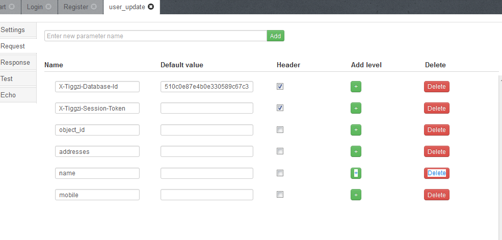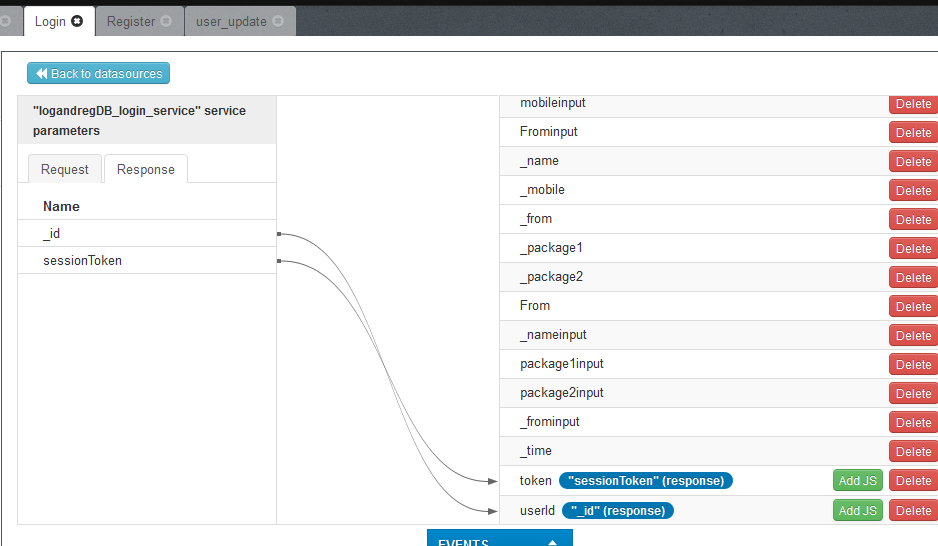 Then you can use the service to save user parameters in the app. Map localStorage variable userId value to request parameter object_id.