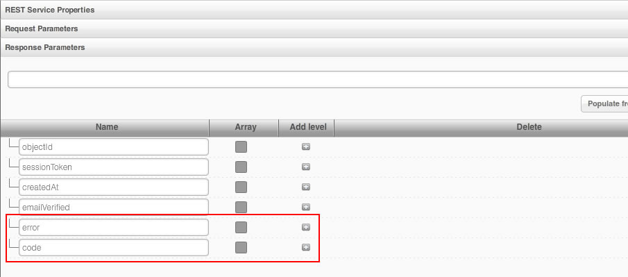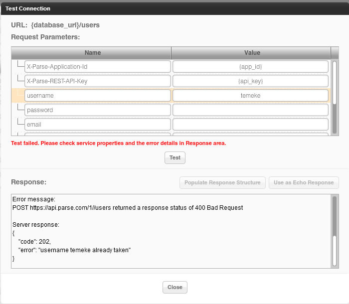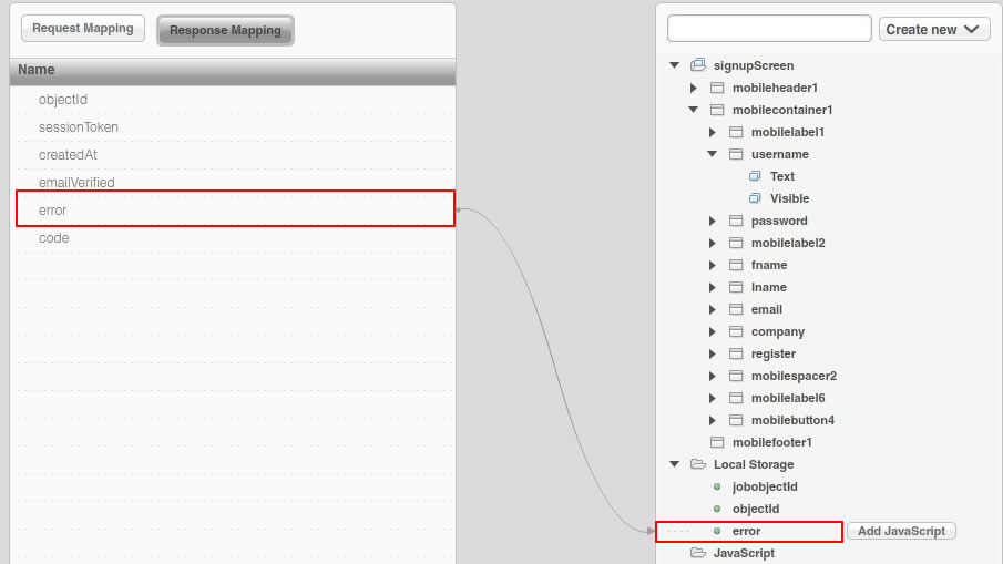In addition to your standard response parameters, you could add this at the end: "code": 202, "error": "username temeke already taken" when an error occurs, only the two above fields will be matched and used. So, you could map 'error' to a label and the message will be displayed.