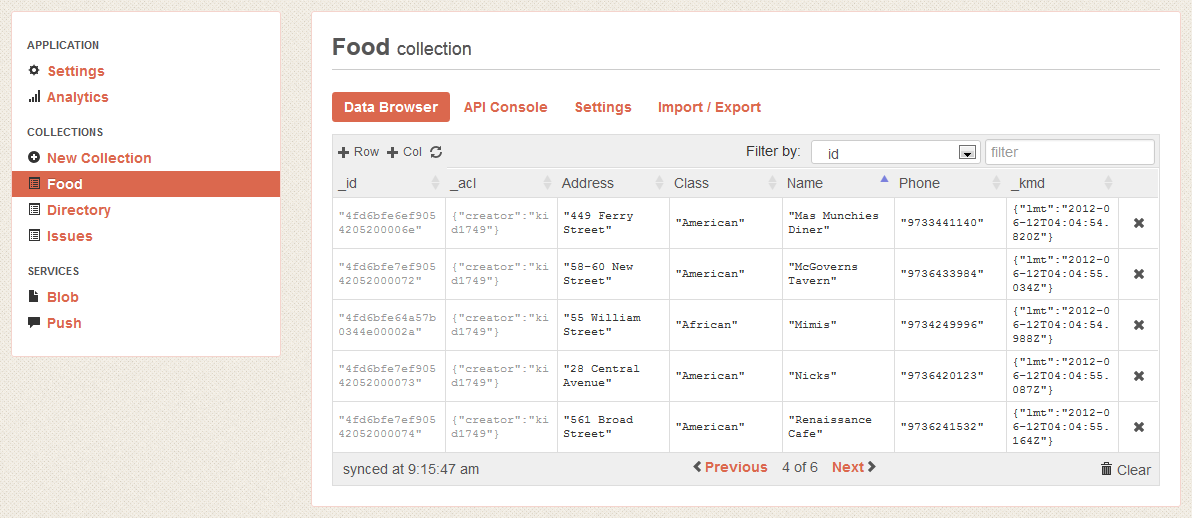 Correct. and using kinvey I just thought I'd add a "Class" column to each restaurant and put in the type of restaurant in the cell.